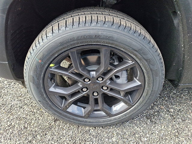 Below is all the standard equipment Blackout Model (Black Painted Roof, Delete Limited Badge, Dual-Pane Panoramic Sunroof, Gloss Black Exterior Accents, and Wheels: 20" x 8.5" Black Painted Aluminum), Quick Order Package 23E, 4WD, 4-Wheel Disc Brakes, 6 Speakers, ABS brakes, Active Noise Control System, Air Conditioning, Alloy wheels, AM/FM radio: SiriusXM with 360L, Anti-whiplash front head restraints, Audio memory, Auto High-beam Headlights, Automatic temperature control, Brake assist, Bumpers: body-color, Capri Leatherette Seats, Compass, Delay-off headlights, Driver door bin, Driver vanity mirror, Dual front impact airbags, Dual front side impact airbags, Electronic Stability Control, Emergency communication system, Four wheel independent suspension, Front anti-roll bar, Front Bucket Seats, Front Center Armrest w/Storage, Front dual zone A/C, Front fog lights, Front License Plate Bracket, Front reading lights, Fully automatic headlights, Garage door transmitter, Heated door mirrors, Heated front seats, Heated rear seats, Heated steering wheel, Illuminated entry, Knee airbag, Low tire pressure warning, Memory seat, Model Year Tracking, Navigation System, Normal Duty Suspension, Occupant sensing airbag, Outside temperature display, Overhead airbag, Overhead console, Panic alarm, ParkView Rear Back-Up Camera, Passenger door bin, Passenger vanity mirror, Power door mirrors, Power driver seat, Power Liftgate, Power passenger seat, Power steering, Power windows, Radio data system, Radio: Uconnect 5 Nav with 10.1" Display, Rear anti-roll bar, Rear reading lights, Rear window defroster, Rear window wiper, Remote keyless entry, Security system, Speed control, Speed-Sensitive Wipers, Split folding rear seat, Spoiler, Steering wheel mounted audio controls, Tachometer, Telescoping steering wheel, Tilt steering wheel, Traction control, Trip computer, Turn signal indicator mirrors, Variably intermittent wipers, Voltmeter, and Wheels: 18" x 8" Polished/Painted Aluminum.