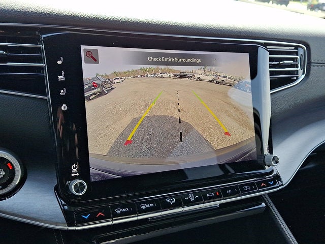 Below is all the standard equipment Quick Order Package 29E Grand Wagoneer, 118 MPH Maximum Speed Calibration, 3.55 Rear Axle Ratio, 3rd row seats: bench, 4-Wheel Disc Brakes, 9 Speakers, ABS brakes, Air Conditioning, Alloy wheels, AM/FM radio: SiriusXM with 360L, Anti-whiplash front head restraints, Apple CarPlay/Android Auto, Audio memory, Auto Adjust in Reverse Exterior Mirrors, Auto High-beam Headlights, Auto-dimming door mirrors, Auto-Dimming Exterior Driver Mirror, Auto-dimming Rear-View mirror, Auto-leveling suspension, Automatic temperature control, Black Exterior Accents, Brake assist, Bumpers: body-color, Compass, Delay-off headlights, Driver door bin, Driver vanity mirror, Driver's Seat Mounted Armrest, Dual front impact airbags, Dual front side impact airbags, Electronic Stability Control, Emergency communication system: Jeep Connect, Exterior Mirrors Approach Lamps, Exterior Mirrors with Memory, Exterior Mirrors with Supplemental Signals, Exterior Parking Camera Rear, Four wheel independent suspension, Front anti-roll bar, Front Bucket Seats, Front Center Armrest w/Storage, Front dual zone A/C, Front fog lights, Front reading lights, Fully automatic headlights, Garage door transmitter, Heated door mirrors, Heated Exterior Mirrors, Heated front seats, Heated steering wheel, Illuminated entry, Knee airbag, Low tire pressure warning, Memory seat, Navigation System, Normal Duty Suspension, Occupant sensing airbag, Outside temperature display, Overhead airbag, Overhead console, Panic alarm, Passenger door bin, Passenger seat mounted armrest, Passenger vanity mirror, Power door mirrors, Power driver seat, Power Liftgate, Power passenger seat, Power steering, Power windows, Radio data system, Radio: Uconnect 5 Nav with 12" Display, Rain sensing wipers, Rear air conditioning, Rear anti-roll bar, Rear reading lights, Rear seat center armrest, Rear window defroster, Rear window wiper, Reclining 3rd row seat, Remote keyless entry, Security system, Speed control, Speed-sensing steering, Speed-Sensitive Wipers, Split folding rear seat, Steering wheel memory, Steering wheel mounted audio controls, Tachometer, Telescoping steering wheel, Tilt steering wheel, Traction control, Trip computer, Turn signal indicator mirrors, Variably intermittent wipers, Ventilated front seats, Voltmeter, and Wheels: 20" x 9.0" Machine Face Painted Aluminum.
