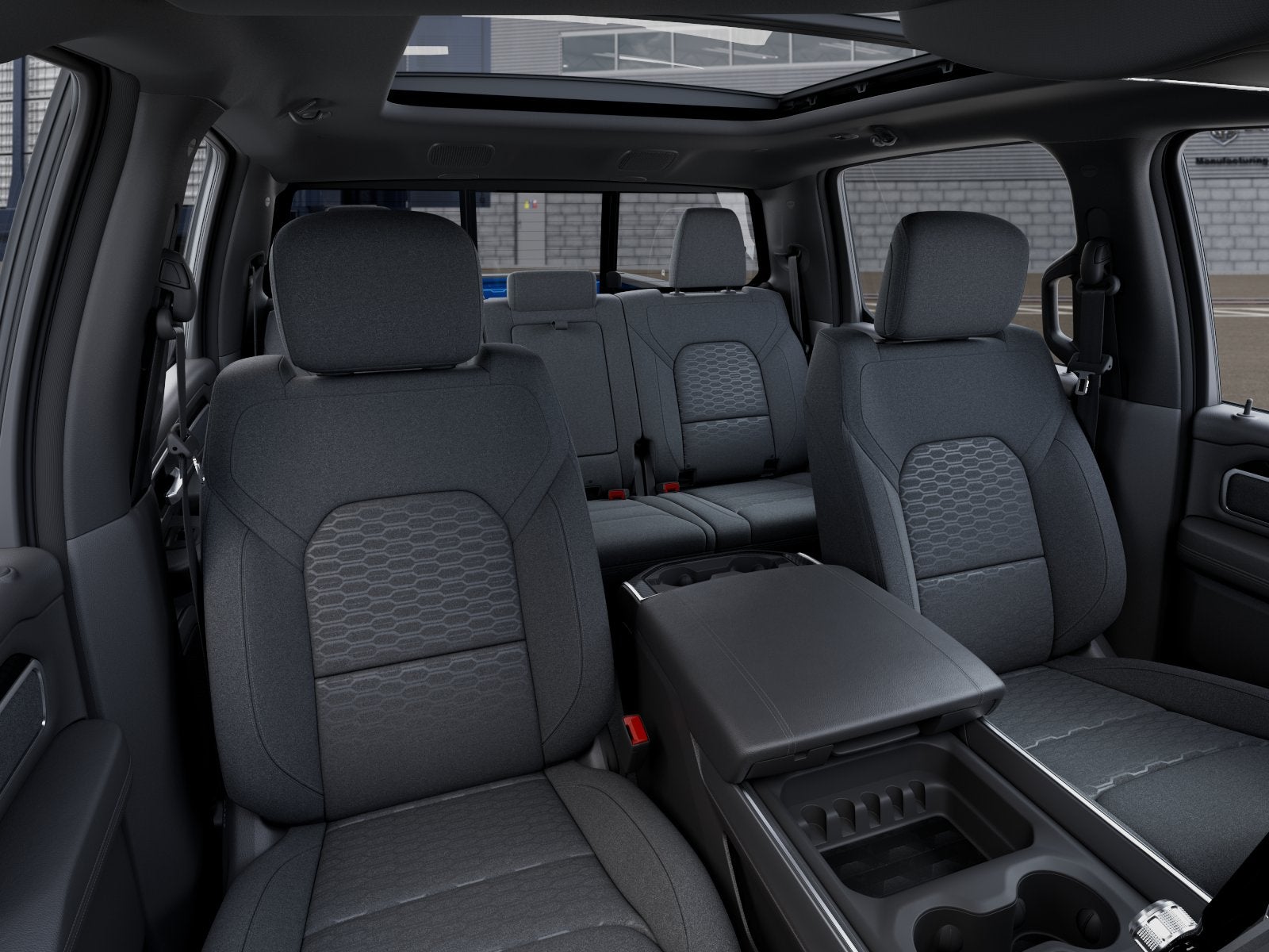 Below is all the standard equipment Bed Utility Group (Exterior 115V AC Outlet, MOPAR 4 Adjustable Cargo Tie-Down Hooks, MOPAR Spray in Bedliner, and Pick-Up Box Lighting), Big Horn Level 2 Equipment Group (115V Auxiliary Power Outlet, 115V Auxiliary Rear Power Outlet, 12" Touchscreen Display, 2nd Row in Floor Storage Bins, 3 Rear Seat Head Restraints, 4 Way Front Headrests, 400W Inverter, 4G LTE Wi-Fi Hot Spot, 9 Amplified Speakers with Subwoofer, Air Conditioning ATC with Dual Zone Control, Apple CarPlay, Auto Power-Folding Mirrors, Auto-Dimming Exterior Driver Mirror, Auto-Dimming Rear-View Mirror, Black Exterior Mirrors, Black Premium Power Mirrors, Body Color Fender Flares, Bucket Seats, Center Console Parts Module, Cluster 7.0" TFT Color Display, Configurable Drive Mode, Connected Travel and Traffic Services, Connectivity - US/Canada, Convex Wide-Angle Exterior Mirror Insert, Deluxe Cloth Bucket Seats, Disassociated Touchscreen Display, Exterior Mirrors Courtesy Lamps, Exterior Mirrors with Heating Element, Exterior Mirrors with Supplemental Signals, Front Seat Back Map Pockets, Full Length Floor Console, Global Telematics Box Module, Glove Box Lamp, Google Android Auto, GPS Antenna Input, GPS Navigation, HD Radio, Heated Front Seats, Heated Steering Wheel, Integrated Center Stack Radio, Integrated Voice Command with Bluetooth®, Leather Wrapped Steering Wheel, LED Dome Lamp with on/Off Switch, LED Footwell Lighting, Manual Adjust 4-Way Front Passenger Seat, Media Hub with 2 Charge Only USBs, Overhead LED Lamps, Power 2-Way Driver Lumbar Adjust, Power Adjust 8-Way Driver Seat, Power Adjustable Pedals, Premium Overhead Console, Radio: Uconnect 5 Navigation with 12.0" Display, Rear 60/40 Folding Seat, Rear Center Armrest, Rear Power Sliding Window, Rear Window Defroster, Remote Tailgate Release, Security Alarm, SiriusXM Radio Service, SiriusXM with 360L, Steering Wheel Mounted Audio Controls, Sun Visors with Illuminated Vanity Mirrors, Universal Garage Door Opener, and USB Host Flip), Quick Order Package 21Z Big Horn, 4-Wheel Disc Brakes, 48V Belt Starter Generator, 6 Speakers, ABS brakes, Air Conditioning, Alloy wheels, AM/FM radio, Anti-Spin Differential Rear Axle, Apple CarPlay/Android Auto, Auto High-beam Headlights, Brake assist, Bumpers: chrome, Cloth Bucket Seats, Compass, Delay-off headlights, Dome Dual LED Reading Lamp, Driver door bin, Dual front impact airbags, Dual front side impact airbags, Dual-Pane Panoramic Sunroof, Electronic Stability Control, Front anti-roll bar, Front Bucket Seats, Front Center Armrest w/Storage, Front fog lights, Front License Plate Bracket, Front reading lights, Front wheel independent suspension, Fully automatic headlights, Heated door mirrors, Illuminated entry, Low tire pressure warning, Manual Adjust 4-Way Driver Seat, Manual Folding Exterior Mirrors, Occupant sensing airbag, Outsi