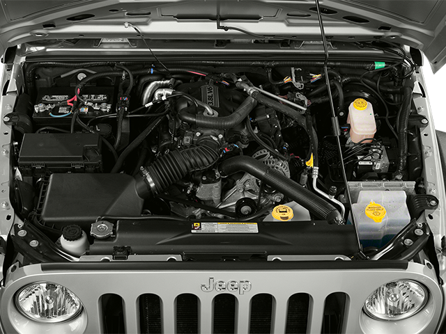 Below is all the standard equipment Connectivity Group (Chrome/Leather Wrapped Shift Knob, Leather Wrapped Steering Wheel, Remote USB Port, Tire Pressure Monitoring Display, Uconnect Voice Command w/Bluetooth®, and Vehicle Information Center), Quick Order Package 24S (17 x 7.5 Aluminum Wheels, Auto-Dimming Mirror w/Reading Lamp, and Deep Tint Sunscreen Windows), 1-Year SiriusXM Radio Service, 16 x 7.0 Luxury Styled Steel Wheels, 3.21 Rear Axle Ratio, 4-Wheel Disc Brakes, 6 Speakers, ABS brakes, Air Conditioning, AM/FM radio, Black 3-Piece Hard Top, Brake assist, CD player, Cloth Bucket Seats, Compass, Driver door bin, Driver vanity mirror, Dual front impact airbags, Electronic Stability Control, Freedom Panel Storage Bag, Front 1-Touch Down Power Windows, Front anti-roll bar, Front Bucket Seats, Front Center Armrest w/Storage, Front fog lights, Integrated roll-over protection, Low tire pressure warning, Normal Duty Suspension, Occupant sensing airbag, Outside temperature display, Passenger door bin, Passenger vanity mirror, Power Heated Mirrors, Power Locks, Power steering, Radio: Uconnect 130 AM/FM/CD/MP3, Rear anti-roll bar, Rear Window Defroster, Rear Window Wiper/Washer, Remote Keyless Entry, Security Alarm, SIRIUS Satellite Radio, Speed control, Split folding rear seat, Steering wheel mounted audio controls, Sunrider Soft Top, Tachometer, Tilt steering wheel, Tinted Rear Quarter & Liftgate Windows, Traction control, Trip computer, and Variably intermittent wipers.