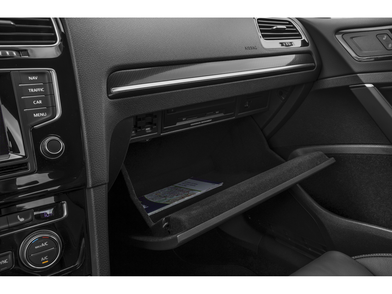 Below is all the standard equipment Black w/Leather Seating Surfaces, 4-Wheel Disc Brakes, ABS brakes, Air Conditioning, Alloy wheels, AM/FM radio: SiriusXM, Anti-whiplash front head restraints, Auto-dimming Rear-View mirror, Automatic temperature control, Brake assist, Bumpers: body-color, Compass, Driver door bin, Driver vanity mirror, Dual front impact airbags, Dual front side impact airbags, Electronic Stability Control, Emergency communication system: VW Car-Net, Exterior Parking Camera Rear, Four wheel independent suspension, Front anti-roll bar, Front Bucket Seats, Front Center Armrest, Front dual zone A/C, Front reading lights, Fully automatic headlights, Headlight cleaning, Heated door mirrors, Heated front seats, Heated Top Sport Front Seats, High intensity discharge headlights: Bi-Xenon, Illuminated entry, Leather Seating Surfaces, Leather Shift Knob, Low tire pressure warning, Occupant sensing airbag, Outside temperature display, Overhead airbag, Overhead console, Panic alarm, Passenger door bin, Passenger vanity mirror, Power door mirrors, Power driver seat, Power passenger seat, Power steering, Power windows, Radio data system, Rain sensing wipers, Rear anti-roll bar, Rear reading lights, Rear seat center armrest, Rear window defroster, Rear window wiper, Remote CD player, Remote keyless entry, Security system, Speed control, Speed-sensing steering, Speed-Sensitive Wipers, Split folding rear seat, Spoiler, Sport steering wheel, Steering wheel mounted audio controls, Tachometer, Telescoping steering wheel, Tilt steering wheel, Traction control, Trip computer, Turn signal indicator mirrors, and Variably intermittent wipers.