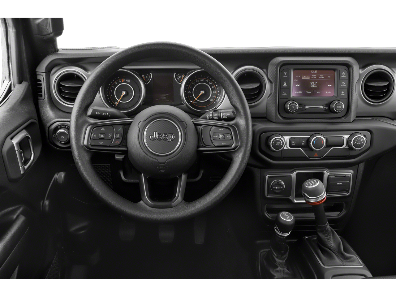 Below is all the standard equipment Quick Order Package 24B, 3.45 Rear Axle Ratio, 4-Wheel Disc Brakes, 8 Speakers, ABS brakes, Air Conditioning, AM/FM radio, Brake assist, Cloth Low-Back Bucket Seats, Compass, Delay-off headlights, Driver door bin, Driver vanity mirror, Dual front impact airbags, Dual front side impact airbags, Electronic Stability Control, Front anti-roll bar, Front Bucket Seats, Front Center Armrest w/Storage, Front fog lights, Front reading lights, Integrated roll-over protection, Low tire pressure warning, Manufacturer's Statement of Origin (DISC), Non-Lock Fuel Cap w/o Discriminator, Normal Duty Suspension, Occupant sensing airbag, Outside temperature display, ParkView Rear Back-Up Camera, Passenger door bin, Passenger vanity mirror, Power steering, Radio data system, Radio: Uconnect 3 w/5 Display, Rear anti-roll bar, Rear reading lights, Speed control, Steering wheel mounted audio controls, Tachometer, Telescoping steering wheel, Tilt steering wheel, Traction control, Trip computer, Variably intermittent wipers, and Wheels: 17 x 7.5 Black Steel Styled. Awards: