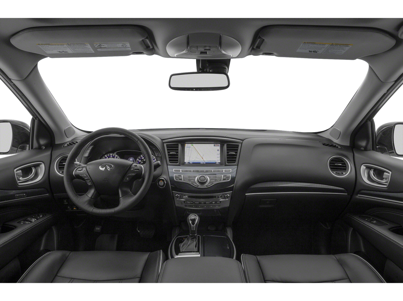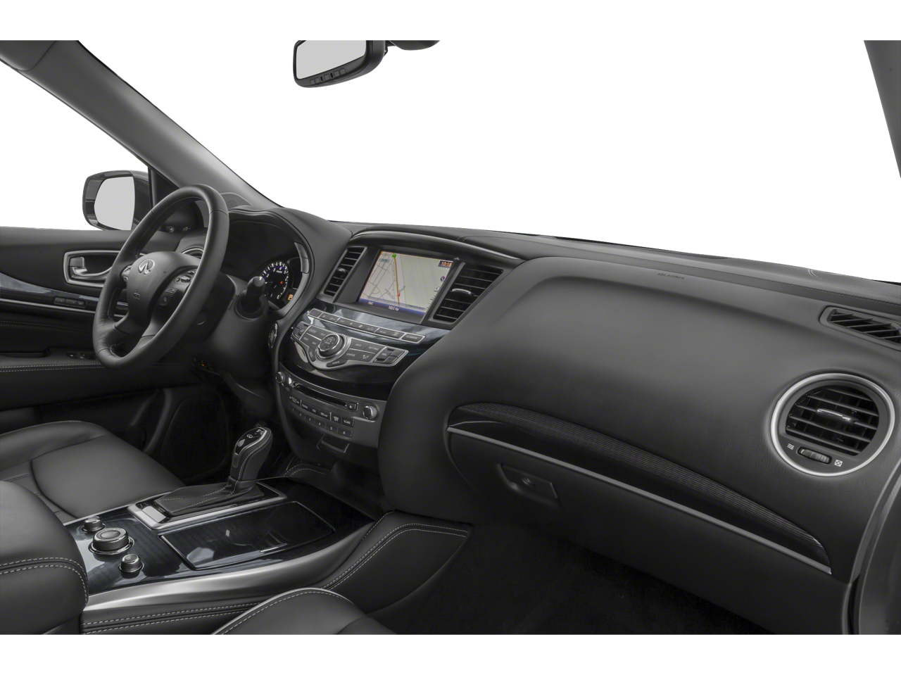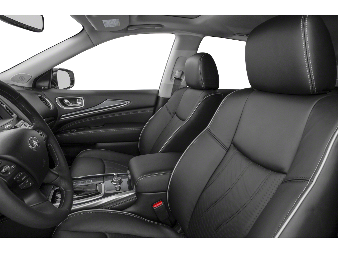 Below is all the standard equipment Cargo Package Essential (Cargo Protector, Console Net, First Aid Kit, and Rear Cargo Cover), Essential Package (Around View Monitor w/Moving Object Detection, Front & Rear Sonar System (2FR/2RR), Illuminated Kick Plates (IKP), INFINITI InTouch w/Navigation & InTouch Services, Leather-Appointed Seat Trim, Rain-Sensing Front Windshield Wipers, and Voice Recognition for Navigation Functions), 13 Speakers, 3rd row seats: bench, 4-Wheel Disc Brakes, 5.25 Axle Ratio, ABS brakes, Air Conditioning, Alloy wheels, AM/FM radio: SiriusXM, Anti-whiplash front head restraints, Auto-dimming Rear-View mirror, Automatic temperature control, Bodyside moldings, Brake assist, Bumpers: body-color, Carpeted Floor Mats (4-Piece Set), CD player, Delay-off headlights, Driver door bin, Driver vanity mirror, Dual front impact airbags, Dual front side impact airbags, Electronic Stability Control, Four wheel independent suspension, Front anti-roll bar, Front Bucket Seats, Front Center Armrest w/Storage, Front dual zone A/C, Front fog lights, Front reading lights, Fully automatic headlights, Garage door transmitter: HomeLink, Heated door mirrors, Heated Front Seats, Heated front seats, Heated steering wheel, Illuminated entry, Illuminated Kick Plates (K11), Leather steering wheel, Leatherette Seat Trim, Literature Kit, Low tire pressure warning, Memory seat, Occupant sensing airbag, Outside temperature display, Overhead airbag, Overhead console, Panic alarm, Passenger door bin, Passenger vanity mirror, Power door mirrors, Power driver seat, Power Liftgate, Power moonroof, Power passenger seat, Power steering, Power windows, Radio data system, Radio: AM/FM/CD/DVD w/Bose Premium Audio System, Rear air conditioning, Rear anti-roll bar, Rear Bumper Protector, Rear reading lights, Rear seat center armrest, Rear window defroster, Rear window wiper, Reclining 3rd row seat, Remote keyless entry, Roof rack: rails only, Security system, Speed control, Speed-sensing steering, Speed-Sensitive Wipers, Splash Guards (Color Matched, Set of 4), Split folding rear seat, Spoiler, Steering wheel memory, Steering wheel mounted audio controls, Tachometer, Telescoping steering wheel, Tilt steering wheel, Traction control, Trip computer, Turn signal indicator mirrors, Variably intermittent wipers, and Wheels: 18 Triple 5-Spoke Aluminum-Alloy. Awards: