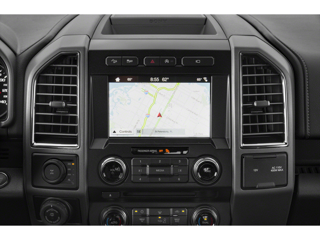 Below is all the standard equipment Equipment Group 802A Luxury (10-Way Power Driver & Passenger Seats, 360 Degree Camera, 4.10 Front Axle w/Torsen Differential, 8 Productivity Screen, Adaptive Cruise Control w/Stop-and-Go, Advanced Security Pack, Ambient Lighting - Ice Blue Color Only, BLIS Blind Spot Information System, Dual-Zone Electronic Automatic Temperature Control, Electronic Locking w/4.10 Axle Ratio, Heated & Ventilated Leather 40/Console/40 Front Seats, Heated Steering Wheel, Heated Windshield Wiper Park, Inflatable Rear Safety Belts, Integrated Trailer Brake Controller, Intelligent Access w/Push-Button Start, Lane Keeping System, LED Box Lighting, LED Sideview Mirror Spotlights, Memory System (Seat, Pedal, Exterior Mirror), Power Glass Sideview Mirr w/Body-Color Skull Caps, Power Tilt/Telescoping Steering Column w/Memory, Power-Adjustable Pedals, Power-Sliding Rear Window, Pro Trailer Backup Assist, Radio: B&O Sound System by Bang & Olufsen, Remote Start System w/Remote Tailgate Release, SYNC 3, Tailgate Applique FORD, Universal Garage Door Opener, and Voice-Activated Touchscreen Navigation), GVWR: 7,050 lbs Payload Package, 4WD, 17 Forged Aluminum Bead-Lock Capable Wheels, Navigation System, Twin Panel Moonroof, 4-Wheel Disc Brakes, 7 Speakers, 8-Way Power Driver's Seat w/Power Lumbar, ABS brakes, Air Conditioning, Alloy wheels, AM/FM radio: SiriusXM, Auto High-beam Headlights, Auto-dimming Rear-View mirror, Brake assist, Compass, Delay-off headlights, Driver door bin, Driver vanity mirror, Dual front impact airbags, Dual front side impact airbags, Electronic Stability Control, Emergency communication system: SYNC 3 911 Assist, Exterior Parking Camera Rear, Front anti-roll bar, Front Bucket Seats, Front Center Armrest, Front License Plate Bracket, Front reading lights, Front wheel independent suspension, Fully automatic headlights, Heated Leather 40/Console/40 Front Seats, Illuminated entry, Leather steering wheel, Low tire pressure warning, Occupant sensing airbag, Outside temperature display, Overhead airbag, Overhead console, Panic alarm, Passenger door bin, Passenger vanity mirror, Power door mirrors, Power driver seat, Power steering, Power windows, Radio data system, Radio: SiriusXM w/7 Speakers, Rear Parking Sensors, Rear reading lights, Rear step bumper, Rear window defroster, Remote keyless entry, Remote Start System, Second-Row Heated Seats, Security system, Speed control, Speed-sensing steering, Split folding rear seat, Steering wheel mounted audio controls, Tachometer, Tailgate Step w/Tailgate Lift Assist, Telescoping steering wheel, Tilt steering wheel, Tough Bed Spray-In Bedliner, Traction control, Trip computer, Unique Cloth Trim Seats, and Variably intermittent wipers. Awards: