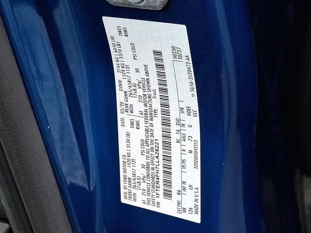 Below is all the standard equipment Equipment Group 301A Mid (Auto-Dimming Rear-View Mirror, Leather-Wrapped Shifter, Leather-Wrapped Steering Wheel, and Power-Folding Sideview Mirrors w/Power Glass), FX4 Off-Road Package (4x4 FX4 Off-Road Bodyside Decal, Electronic-Locking Rear Differential, Off-Road Screen in Cluster, Off-Road Tuned Suspension, and Terrain Management System), Sport Appearance Package (Black Grille w/Magnetic Surround, Exposed Front Tow Hooks, Magnetic Wheel-Lip Molding, Sport Box Decal, and Wheels: 17 Magnetic Painted Aluminum), Trailer Tow Package (Class IV Trailer Hitch Receiver), 4WD, 4-Wheel Disc Brakes, 5 Rectangular Black Running Boards, 6 Speakers, ABS brakes, Air Conditioning, Alloy wheels, AM/FM radio: SiriusXM, AM/FM Stereo, Auto High-beam Headlights, Automatic temperature control, Brake assist, Bumpers: body-color, Compass, Delay-off headlights, Driver door bin, Dual front impact airbags, Dual front side impact airbags, Electronic Stability Control, Emergency communication system: SYNC 3 911 Assist, Exterior Parking Camera Rear, Front anti-roll bar, Front Bucket Seats, Front Center Armrest, Front dual zone A/C, Front fog lights, Front Premium Cloth Bucket Seats, Front reading lights, Front wheel independent suspension, Fully automatic headlights, Illuminated entry, Low tire pressure warning, Occupant sensing airbag, Outside temperature display, Overhead airbag, Overhead console, Panic alarm, Passenger door bin, Power door mirrors, Power steering, Power windows, Rear reading lights, Rear seat center armrest, Rear step bumper, Rear window defroster, Remote keyless entry, Security system, SiriusXM Satellite Radio, Speed control, Speed-sensing steering, Steering wheel mounted audio controls, SYNC 3, Telescoping steering wheel, Tilt steering wheel, Traction control, Trip computer, Variably intermittent wipers, Voltmeter, and Wheels: 17 Silver-Painted Aluminum.