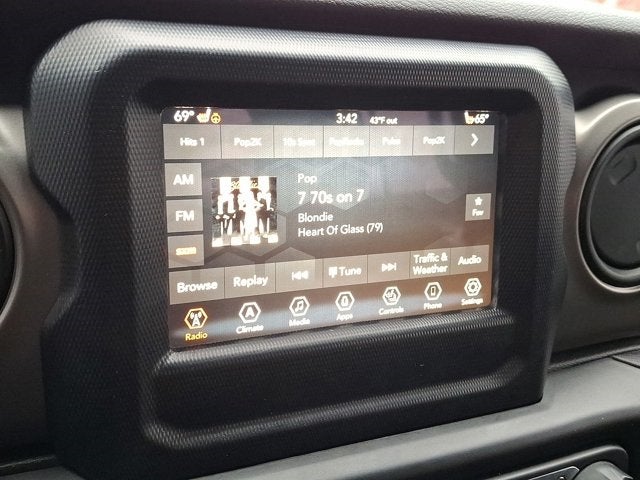 Below is all the standard equipment Cold Weather Group (Heated Front Seats and Heated Steering Wheel), Convenience Group (Universal Garage Door Opener), LED Headlamp & Fog Lamp Group (Front LED Fog Lamps and LED Reflector Headlamps), Quick Order Package 24W Willys (4-Wheel Drive Swing Gate Decal, Anti-Lock 4-Wheel Disc HD Brakes, Anti-Spin Differential Rear Axle, Automatic Headlamps, Black Grille, Black Trail Rated Badge, Bridgestone Brand Tires, Deep Tint Sunscreen Windows, Front 1-Touch Down Power Windows, Leather Wrapped Steering Wheel, Matte Black Jeep Badge, MOPAR All-Weather Floor Mats, Power Heated Mirrors, Remote Keyless Entry, Security Alarm, Speed Sensitive Power Locks, Sun Visors w/Illuminated Vanity Mirrors, Wheels: 17 x 7.5 Moab Black Aluminum, Willys, Willys Hood Decal, and Wrangler Decal), Technology Group (1-Year SiriusXM Radio Service, 7.0 Touchscreen Display, Air Conditioning w/Auto Temperature Control, Air Filtering, Apple CarPlay, Cluster 7.0 TFT Color Display, Google Android Auto, GPS Antenna Input, Integrated Center Stack Radio, Radio: Uconnect 4 w/7 Display, SiriusXM Satellite Radio, and USB Host Flip), FCA US LLC Certified Pre-Owned Certified, 3.45 Rear Axle Ratio, 4-Wheel Disc Brakes, 8 Speakers, ABS brakes, Air Conditioning, AM/FM radio, Apple CarPlay (DISC), Aux Battery, Brake assist, Cloth Low-Back Bucket Seats, Compass, Delay-off headlights, Driver door bin, Driver vanity mirror, Dual front impact airbags, Dual front side impact airbags, Electronic Stability Control, Front anti-roll bar, Front Bucket Seats, Front Center Armrest w/Storage, Front fog lights, Front reading lights, Google Android Auto (DISC), Integrated roll-over protection, Integrated Voice Command w/Bluetooth®, Low tire pressure warning, MOPAR All-Weather Floor Mats (DISC), Non-Lock Fuel Cap w/o Discriminator, Normal Duty Suspension, Occupant sensing airbag, Outside temperature display, ParkView Rear Back-Up Camera, Passenger door bin, Passenger vanity mirror, Power steering, Radio data system, Radio: Uconnect 3 w/5 Display, Rear anti-roll bar, Rear reading lights, Speed control, Split folding rear seat, Steering wheel mounted audio controls, Stop-Start Dual Batt