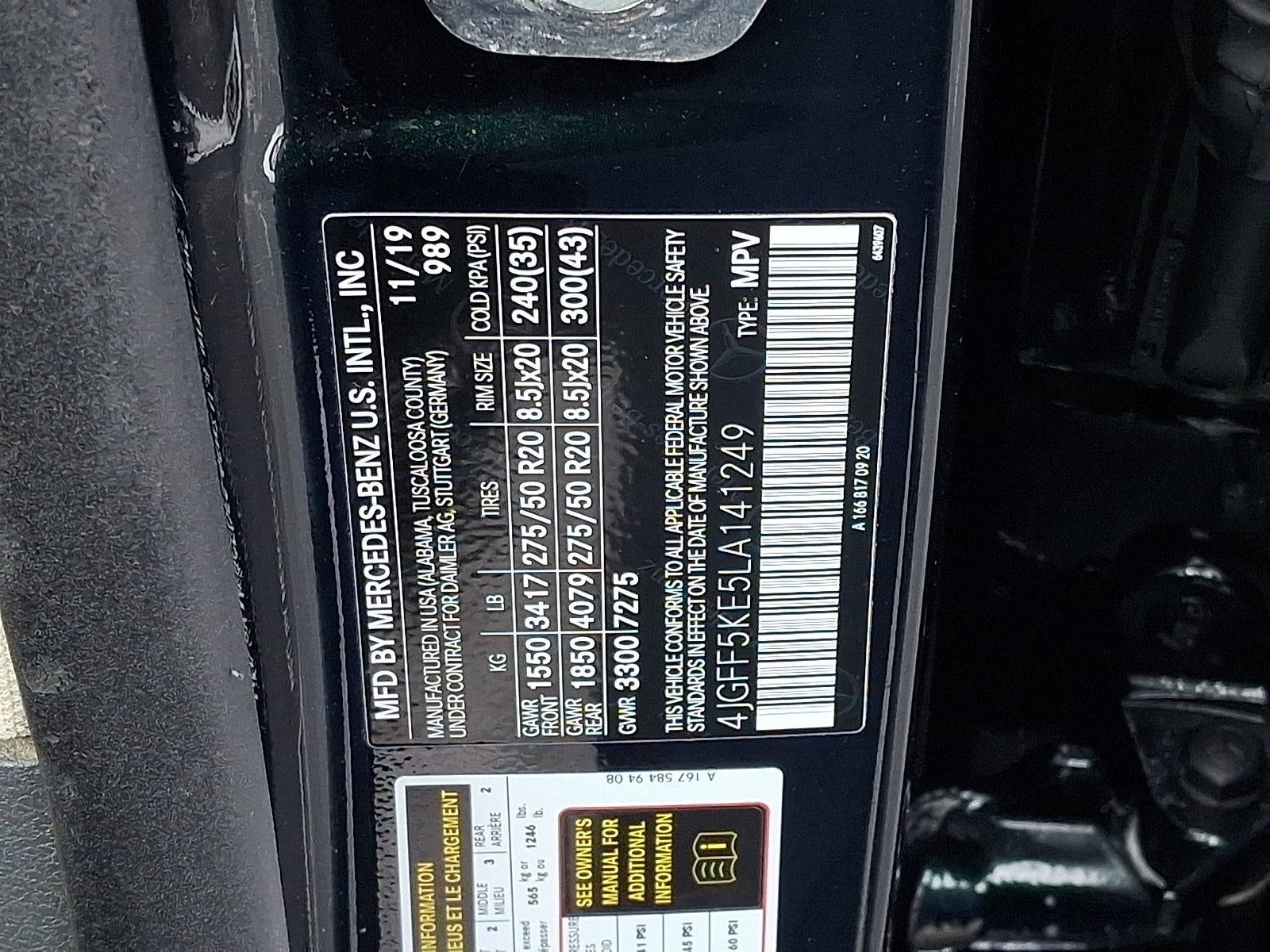 - Front Tire Size: P275/50HR20