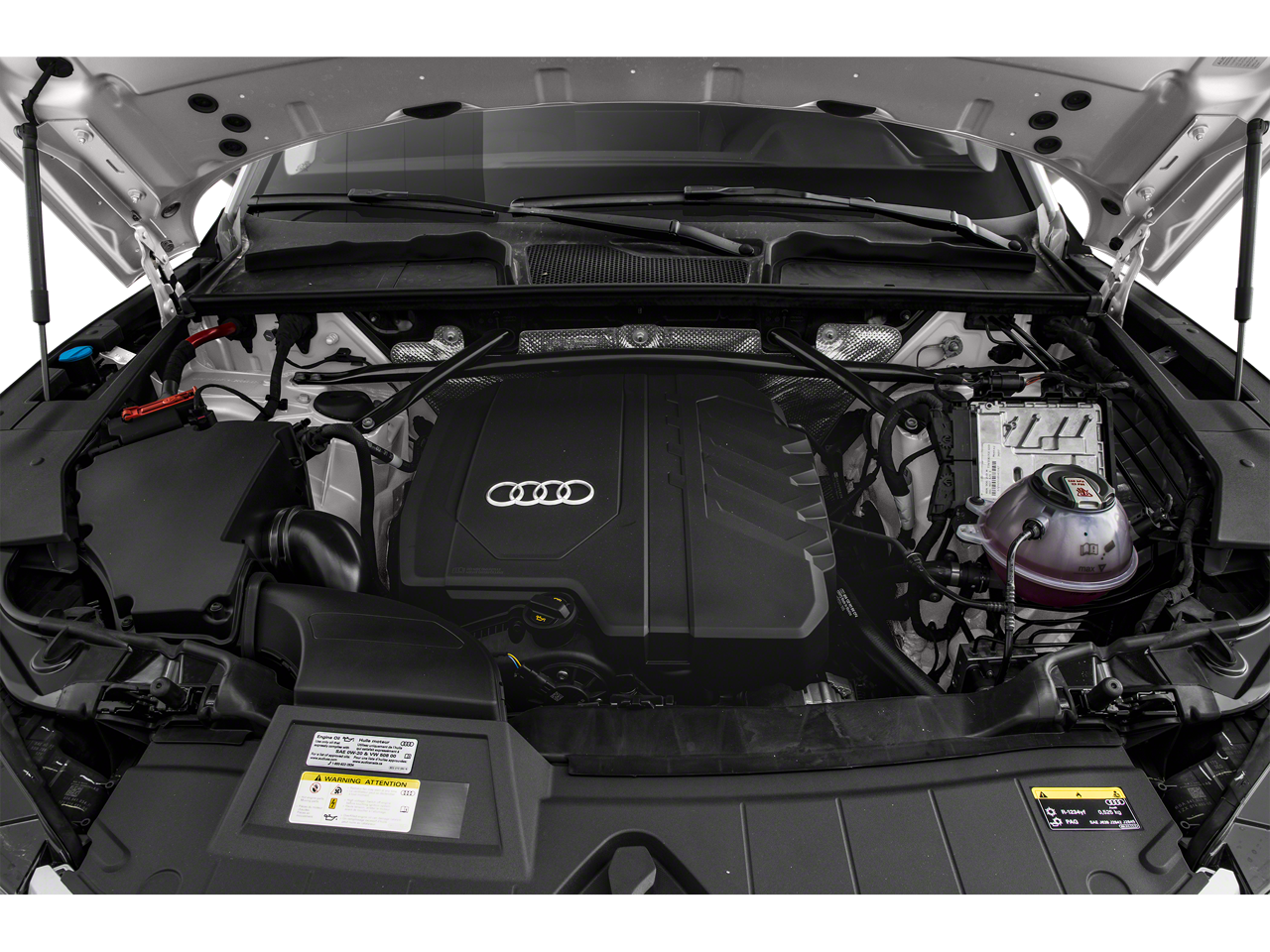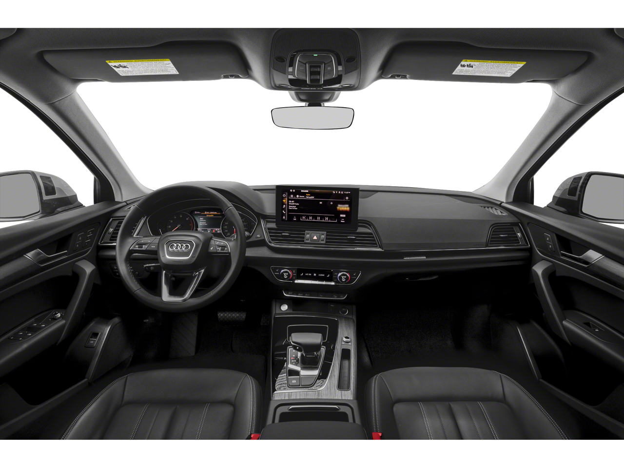 Below is all the standard equipment Leather, 10 Speakers, 4-Wheel Disc Brakes, 5.302 Axle Ratio, ABS brakes, Air Conditioning, Alloy wheels, AM/FM radio, Auto High-beam Headlights, Auto-dimming Rear-View mirror, Automatic temperature control, Brake assist, Bumpers: body-color, Compass, Delay-off headlights, Driver door bin, Driver vanity mirror, Dual front impact airbags, Dual front side impact airbags, Electronic Stability Control, Emergency communication system: Audi connect CARE, Exterior Parking Camera Rear, Four wheel independent suspension, Front anti-roll bar, Front Bucket Seats, Front Center Armrest, Front dual zone A/C, Front fog lights, Front reading lights, Garage door transmitter: HomeLink, Genuine wood console insert, Genuine wood dashboard insert, Genuine wood door panel insert, Heated 8-Way Power Front Bucket Seats, Heated door mirrors, Heated front seats, Illuminated entry, Leather Seating Surfaces, Leather Shift Knob, Low tire pressure warning, Occupant sensing airbag, Outside temperature display, Overhead airbag, Overhead console, Panic alarm, Passenger door bin, Passenger vanity mirror, Power door mirrors, Power driver seat, Power Liftgate, Power passenger seat, Power steering, Power windows, Radio data system, Radio: Audi Sound System, Rain sensing wipers, Rear air conditioning, Rear anti-roll bar, Rear fog lights, Rear reading lights, Rear seat center armrest, Rear window defroster, Rear window wiper, Remote keyless entry, Roof rack, Security system, Speed control, Speed-sensing steering, Speed-Sensitive Wipers, Split folding rear seat, Spoiler, Steering wheel mounted audio controls, Tachometer, Telescoping steering wheel, Tilt steering wheel, Traction control, Trip computer, Turn signal indicator mirrors, Variably intermittent wipers, and Wheels: 18 5-Arm-Star Design.