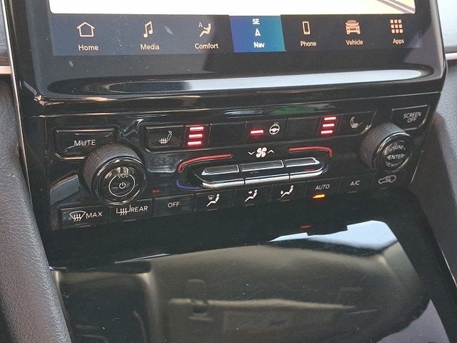 Below is all the standard equipment Quick Order Package 22E, 10.1 Touchscreen Display, 3.45 Rear Axle Ratio, 3rd row seats: split-bench, 4-Wheel Disc Brakes, 506 Watt Amplifier, 6 Speakers, 9 Amplified Speakers w/Subwoofer, ABS brakes, Air Conditioning, Alloy wheels, AM/FM radio: SiriusXM w/360L, Anti-whiplash front head restraints, Apple CarPlay, Apple CarPlay/Android Auto, Audio memory, Auto High-beam Headlights, Automatic temperature control, Brake assist, Bridgestone Brand Tires, Bumpers: body-color, Capri Leather Seats, Compass, Connected Travel & Traffic Services, Connectivity - US/Canada, Delay-off headlights, Disassociated Touchscreen Display, Driver door bin, Driver vanity mirror, Dual front impact airbags, Dual front side impact airbags, Dual-Pane Panoramic Sunroof, Electronic Stability Control, Emergency communication system, Four wheel independent suspension, Front anti-roll bar, Front Bucket Seats, Front Center Armrest w/Storage, Front dual zone A/C, Front fog lights, Front reading lights, Fully automatic headlights, Garage door transmitter, Google Android Auto, GPS Antenna Input, GPS Navigation, HD Radio, Heated door mirrors, Heated front seats, Heated rear seats, Heated steering wheel, Illuminated entry, Integrated Center Stack Radio, Integrated Voice Command w/Bluetooth®, Interior Rear Facing Camera, Knee airbag, Leather steering wheel, Low tire pressure warning, Manual Fold Seatbacks, Memory seat, Normal Duty Suspension, Occupant sensing airbag, Outside temperature display, Overhead airbag, Overhead console, Panic alarm, ParkView Rear Back-Up Camera, Passenger door bin, Passenger vanity mirror, Power door mirrors, Power driver seat, Power Liftgate, Power passenger seat, Power steering, Power windows, Radio data system, Radio: Uconnect 5 Nav w/10.1 Display, Radio: Uconnect 5 w/8.4 Display, Rear air conditioning, Rear anti-roll bar, Rear reading lights, Rear window defroster, Rear window wiper, Reclining 3rd row seat, Remote keyless entry, Roof rack: rails only, Security system, SiriusXM Satellite Radio, SiriusXM w/360L, Speed control, Speed-Sensitive Wipers, Split folding rear seat, Spoiler, Steering wheel mounted audio controls, Tachometer, Telescoping steering wheel, Tilt steering wheel, Traction control, Trip computer, Turn signal indicator mirrors, USB Host Flip, Variably intermittent wipers, Voltmeter, Wheels: 18 x 8.0 Fully Painted Aluminum 2, and Wheels: 20 x 8.5 Polished/Painted Aluminum (DISC)