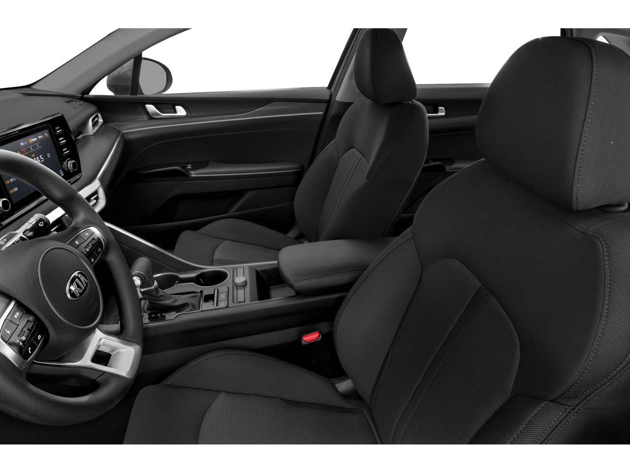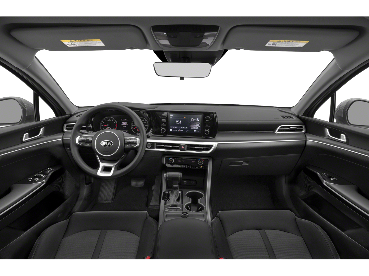2021 Kia K5 LXS in Glacial White Pearl with Sand Cloth.