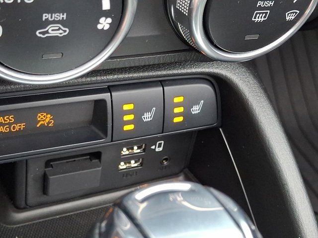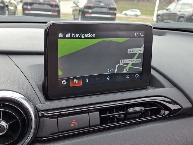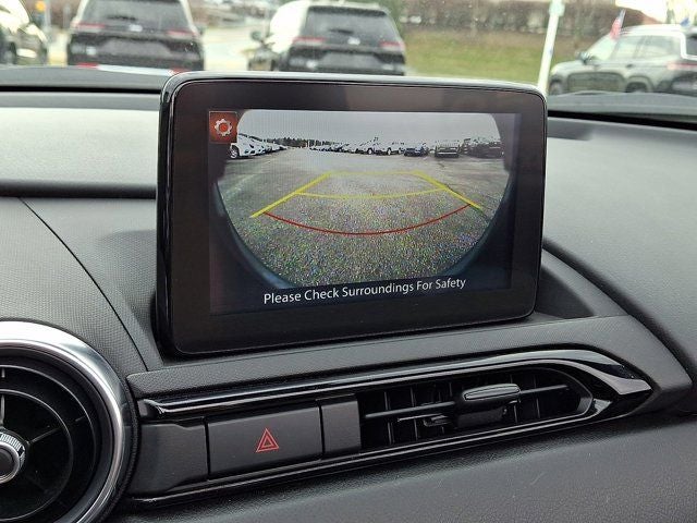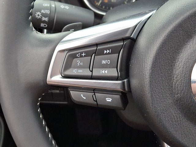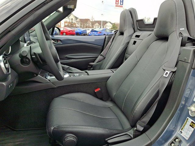 Below is all the standard equipment Appearance Package (Black Rear Bumper Skirt, Black Rear Lip Spoiler, and Black Side Sill Extensions), Navigation System, 4-Wheel Disc Brakes, 9 Speakers, ABS brakes, Air Conditioning, Alloy wheels, AM/FM radio: SiriusXM, AppLink/Apple CarPlay and Android Auto, Auto High-beam Headlights, Auto-dimming door mirrors, Auto-dimming Rear-View mirror, Automatic temperature control, Brake assist, Bumpers: body-color, Convertible roof lining, Convertible roof wind blocker, Delay-off headlights, Driver vanity mirror, Dual front impact airbags, Dual front side impact airbags, Electronic Stability Control, Emergency communication system: MAZDA CONNECT, Exterior Parking Camera Rear, Four wheel independent suspension, Front anti-roll bar, Front Bucket Seats, Front Center Armrest, Fully automatic headlights, Garage door transmitter: HomeLink, Glass rear window, Heated door mirrors, Heated Front Bucket Seats, Heated front seats, Illuminated entry, Leather Shift Knob, Leather Upholstery w/Light Gray Stitching, Low tire pressure warning, MAZDA CONNECT, Occupant sensing airbag, Outside temperature display, Panic alarm, Passenger vanity mirror, Power door mirrors, Power steering, Power windows, Radio data system, Radio: Bose Audio System w/AudioPilot, Rain sensing wipers, Rear anti-roll bar, Rear window defroster, Remote keyless entry, Speed control, Speed-sensing steering, Sport steering wheel, Steering wheel mounted audio controls, Tachometer, Telescoping steering wheel, Tilt steering wheel, Traction control, Trip computer, Variably intermittent wipers, Wheel Locks, and Wheels: 17 x 7 Dark Silver Aluminum Alloy.