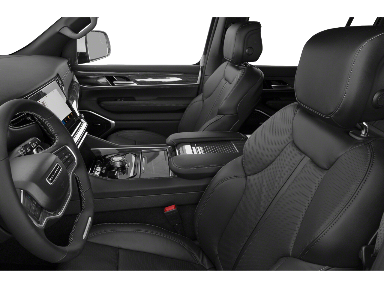 Below is all the standard equipment Quick Order Package 22J, 10 Speakers, 3.21 Rear Axle Ratio, 3rd row seats: bench, 4-Wheel Disc Brakes, ABS brakes, Adjustable pedals, Air Conditioning, Alloy wheels, AM/FM radio: SiriusXM with 360L, Anti-whiplash front head restraints, Audio memory, Auto-dimming door mirrors, Auto-dimming Rear-View mirror, Auto-leveling suspension, Automatic temperature control, Brake assist, Bumpers: body-color, Compass, Delay-off headlights, Driver door bin, Driver vanity mirror, Driver's Seat Mounted Armrest, Dual front impact airbags, Dual front side impact airbags, Electronic Stability Control, Exterior Parking Camera Rear, Four wheel independent suspension, Front anti-roll bar, Front Bucket Seats, Front Center Armrest w/Storage, Front dual zone A/C, Front fog lights, Front reading lights, Fully automatic headlights, Garage door transmitter, Genuine wood console insert, Genuine wood dashboard insert, Genuine wood door panel insert, Heated door mirrors, Heated front seats, Heated steering wheel, Illuminated entry, Knee airbag, Leather Trimmed Bucket Seats, Low tire pressure warning, Memory seat, Navigation System, Normal Duty Suspension, Occupant sensing airbag, Outside temperature display, Overhead airbag, Overhead console, Panic alarm, Passenger door bin, Passenger seat mounted armrest, Passenger vanity mirror, Pedal memory, Power adjustable front head restraints, Power door mirrors, Power driver seat, Power Liftgate, Power passenger seat, Power steering, Power windows, Radio data system, Radio: Uconnect 5 Nav w/10.1 Display, Rain sensing wipers, Rear air conditioning, Rear anti-roll bar, Rear dual zone A/C, Rear reading lights, Rear seat center armrest, Rear window defroster, Rear window wiper, Reclining 3rd row seat, Remote keyless entry, Security system, Speed control, Speed-sensing steering, Speed-Sensitive Wipers, Split folding rear seat, Steering wheel memory, Steering wheel mounted audio controls, Tachometer, Telescoping steering wheel, Tilt steering wheel, Traction control, Trip computer, Turn signal indicator mirrors, Variably intermittent wipers, Ventilated front seats, Voltmeter, and Wheels: 20 x 9.0 Aluminum Base Finish.