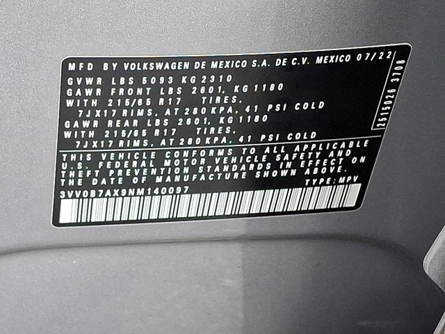 2022 Volkswagen Tiguan 2.0T S in Pyrite Silver Metallic with Titan Black Cloth.