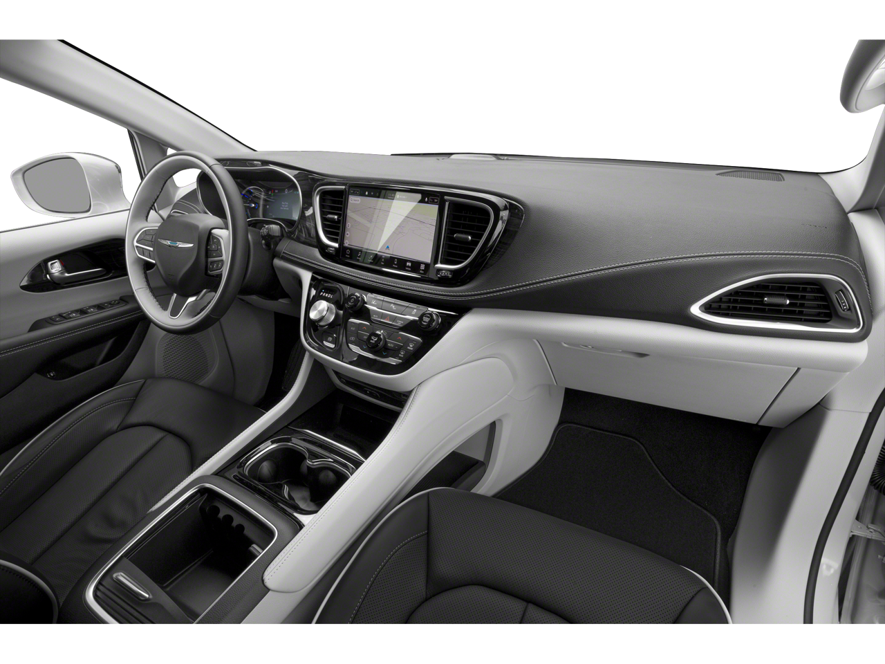 2023 Chrysler Pacifica Hybrid Touring L in Bright White Clearcoat with Black/Alloy/Black Artificial Leather.