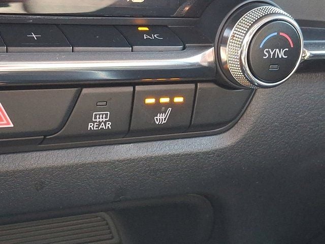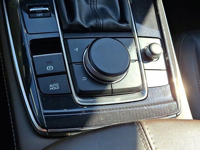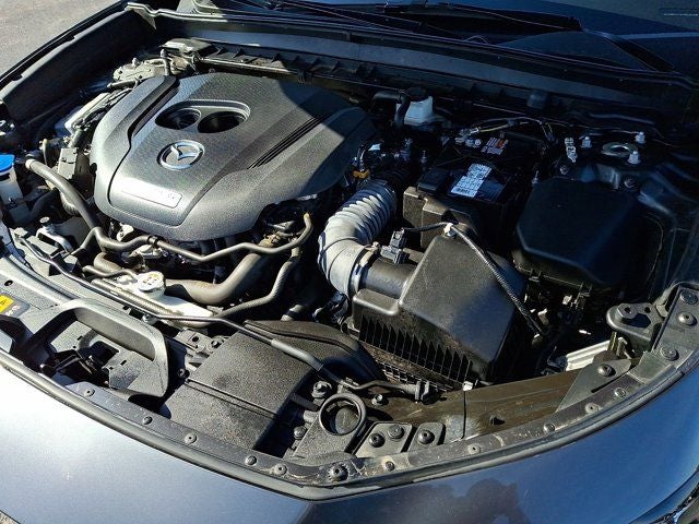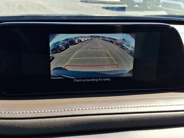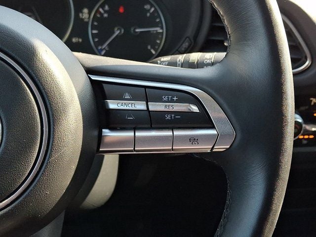 Below is all the standard equipment 12 Speakers, 3.841 Axle Ratio, 4-Wheel Disc Brakes, ABS brakes, Air Conditioning, Alloy wheels, AM/FM radio: SiriusXM, AppLink/Apple CarPlay and Android Auto, Auto High-beam Headlights, Auto-dimming Rear-View mirror, Automatic temperature control, Black Lug Nuts & Black Wheel Locks, Brake assist, Bumpers: body-color, Cargo Cover, Compass, Delay-off headlights, Driver door bin, Driver vanity mirror, Dual front impact airbags, Dual front side impact airbags, Electronic Stability Control, Emergency communication system: Mazda Connected Services (3-year complimentary trial included), Exterior Parking Camera Rear, Front anti-roll bar, Front Bucket Seats, Front Center Armrest, Front dual zone A/C, Front reading lights, Front wheel independent suspension, Fully automatic headlights, Heads-Up Display, Heated door mirrors, Heated Front Bucket Seats, Heated front seats, Heated steering wheel, Illuminated entry, Knee airbag, Leather Seat Trim, Leather Shift Knob, Leather steering wheel, Low tire pressure warning, Machine Gray Metallic Paint, MAZDA CONNECT Infotainment System, Memory seat, Navigation system: MAZDA CONNECT, Occupant sensing airbag, Outside temperature display, Overhead airbag, Overhead console, Panic alarm, Passenger door bin, Passenger vanity mirror, Power door mirrors, Power driver seat, Power Liftgate, Power moonroof, Power steering, Power windows, Radio data system, Radio: AM/FM/HD Audio System w/Mazda Navigation, Rain sensing wipers, Rear seat center armrest, Rear side impact airbag, Rear window defroster, Rear window wiper, Remote keyless entry, Speed control, Speed-sensing steering, Split folding rear seat, Spoiler, Steering wheel mounted audio controls, Tachometer, Telescoping steering wheel, Tilt steering wheel, Traction control, Trip computer, Turn signal indicator mirrors, Variably intermittent wipers, and Wheels: 18 x 7J Aluminum Alloy.