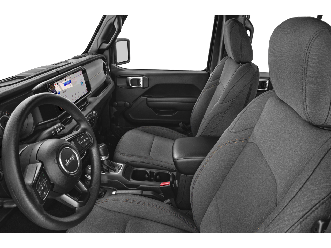 Below is all the standard equipment Convenience Group (2-Door Passive Entry, Front Door Locks, Air Conditioning w/Auto Temperature Control, Air Filtering, Cluster 7.0 TFT Color Display, Emergency/Assistance Call, Heated Front Seats, Heated Steering Wheel, Remote Start System, and Universal Garage Door Opener), Quick Order Package 24S Sport S (Advanced Brake Assist, Automatic Headlamps, Corning Gorilla Glass, Deep Tint Sunscreen Windows, Enhanced Adaptive Cruise Control, Front 1-Touch Down Power Windows, Full Speed Forward Collision Warning Plus, Power Heated Mirrors, Premium Wrapped Steering Wheel, Remote Keyless Entry, Security Alarm, Speed Sensitive Power Locks, Sport S, Sun Visors w/Illuminated Vanity Mirrors, and Wheels: 17 x 7.5 Gray), Black 3-Piece Hard Top, Freedom Panel Storage Bag, No Soft Top, Rear Window Defroster, Rear Window Wiper/Washer, 110 MPH Vehicle Max Speed Calibration, 3.45 Overall Top Gear Ratio, 4-Wheel Disc Brakes, 8 Speakers, ABS brakes, Air Conditioning, AM/FM radio, Apple CarPlay/Android Auto, Aux Battery, Brake assist, Cloth Low-Back Bucket Seats, Compass, Delay-off headlights, Driver door bin, Driver vanity mirror, Dual front impact airbags, Dual front side impact airbags, Electronic Stability Control, Front anti-roll bar, Front Bucket Seats, Front Center Armrest w/Storage, Front fog lights, Front reading lights, Integrated roll-over protection, Low tire pressure warning, MOPAR All-Weather Floor Mats, Non-Lock Fuel Cap w/o Discriminator, Normal Duty Suspension, Occupant sensing airbag, Outside temperature display, Overhead airbag, ParkView Rear Back-Up Camera, Passenger door bin, Passenger vanity mirror, Power steering, Radio data system, Radio: Uconnect 5 w/12.3 Display, Rear anti-roll bar, Rear reading lights, Speed control, Split folding rear seat, Steering wheel mounted audio controls, Stop-Start Dual Battery System, Tachometer, Telescoping steering wheel, Tilt steering wheel, Traction control, Trip computer, Variably intermittent wipers, and Wheels: 17 x 7.5 Black Steel Styled.