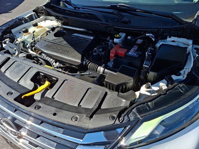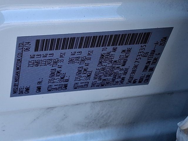Below is all the standard equipment AWD, 4-Wheel Disc Brakes, 5.676 Axle Ratio, 6 Speakers, ABS brakes, Air Conditioning, Alloy wheels, AM/FM radio: SiriusXM, Auto High-beam Headlights, Automatic temperature control, Black Splash Guards (Set of 4), Brake assist, Bumpers: body-color, Chrome Rear Bumper Protector, Cloth Seat Trim w/Patterned Inserts, Delay-off headlights, Driver door bin, Driver vanity mirror, Dual front impact airbags, Dual front side impact airbags, Electronic Stability Control, Emergency communication system: NissanConnect Services, First Aid Kit, Floor Mats w/1-Piece Cargo Area Protector, Four wheel independent suspension, Front anti-roll bar, Front Bucket Seats, Front Center Armrest, Front dual zone A/C, Front reading lights, Fully automatic headlights, Heated door mirrors, Illuminated entry, Knee airbag, Low tire pressure warning, NissanConnect featuring Apple CarPlay and Android Auto, Occupant sensing airbag, Outside temperature display, Overhead airbag, Overhead console, Panic alarm, Passenger door bin, Passenger vanity mirror, Power door mirrors, Power driver seat, Power Liftgate, Power steering, Power windows, Radio data system, Radio: AM/FM NissanConnect, Rear anti-roll bar, Rear Parking Sensors, Rear seat center armrest, Rear side impact airbag, Rear window defroster, Rear window wiper, Remote keyless entry, Speed control, Speed-Sensitive Wipers, Split folding rear seat, Spoiler, Steering wheel mounted audio controls, Tachometer, Telescoping steering wheel, Tilt steering wheel, Traction control, Trip computer, Variably intermittent wipers, and Wheels: 18 Dark Painted Machine Finished Alloy.