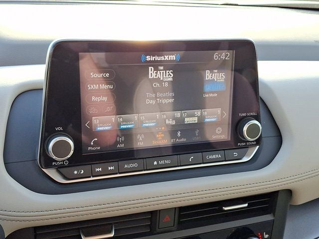 - Radio: AM/FM NissanConnect -inc: 6 speakers plus 2 tweeters, Apple CarPlay, Android Auto, 8" color touch screen display, Bluetooth®, 2 front USB type-C, Wi-Fi hotspot and NissanConnect Services powered by SiriusXM