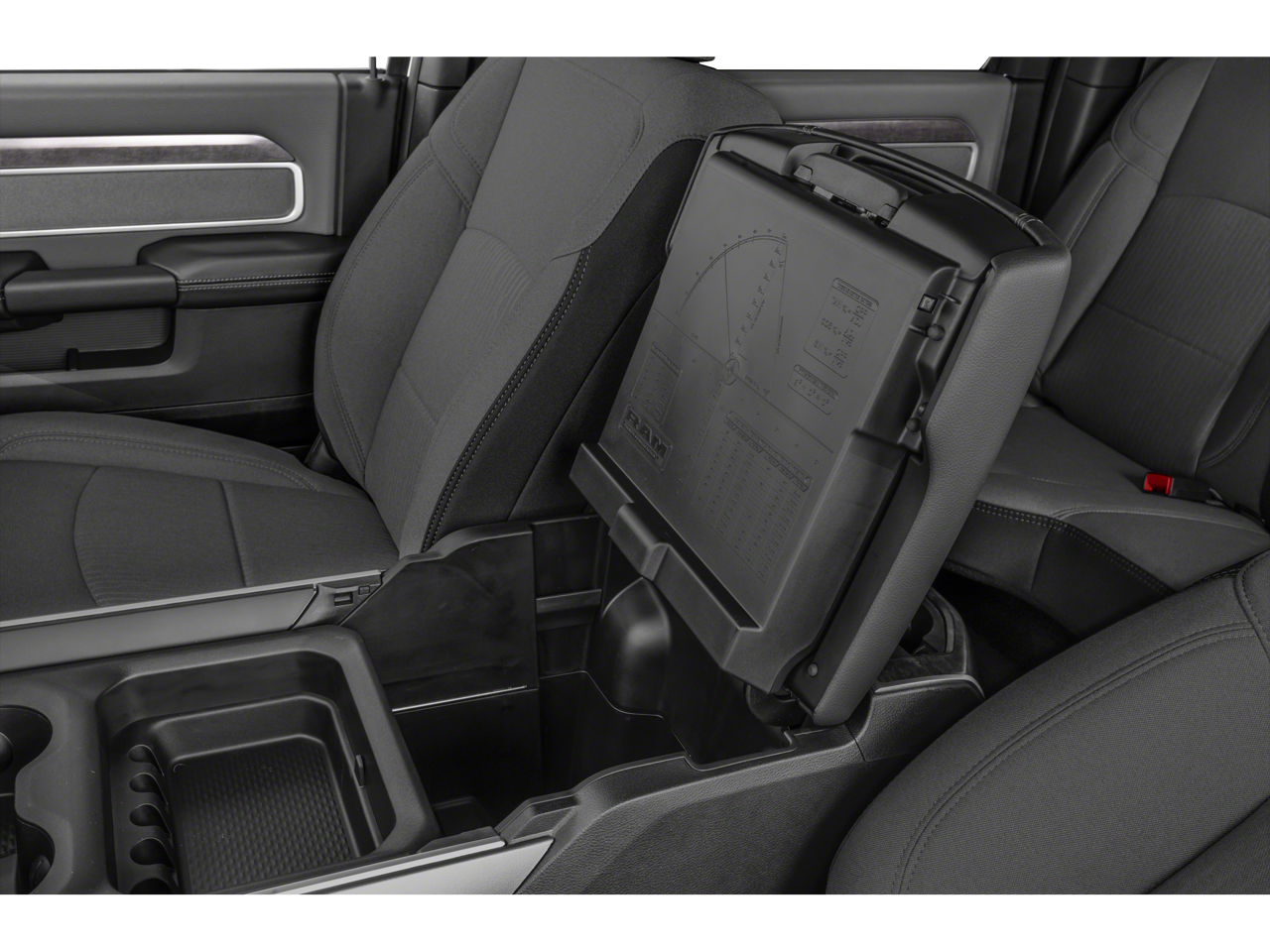 Below is all the standard equipment Bed Utility Group (LED Bed Lighting, MOPAR Deployable Bed Step, and MOPAR Spray In Bedliner), Protection Group (Tow Hooks), Quick Order Package 2GZ Big Horn, 2nd Row In Floor Storage Bins, Anti-Spin Differential Rear Axle, Auto Power-Folding Mirrors, Chrome Flat Cab-Length Side Steps, Glove Box Lamp, Power Adjust 8-Way Driver Seat, Radio: Uconnect 5 W w/8.4 Display, Selectable Tire Fill Alert, Wheels: 18 x 8.0 Steel Chrome Clad, 2 Way Rear Headrest Seat, 3.73 Axle Ratio, 4 Way Front Headrests, 4-Wheel Disc Brakes, 40/20/40 Split Bench Seat, 6 Speakers, ABS brakes, Active Noise Control System, Air Conditioning, Black Exterior Mirrors, Bluetooth® Handsfree Phone & Audio, Brake assist, Bumpers: chrome, Center Hub, Center Stack Storage Drawer, Cloth 40/20/40 Bench Seat, Compass, Connectivity - US/Canada, Delay-off headlights, Driver door bin, Dual front impact airbags, Dual front side impact airbags, Electronic Stability Control, Electronically Controlled Throttle, Emergency communication system: SiriusXM Guardian, Exterior Mirrors w/Heating Element, Front anti-roll bar, Front Center Armrest w/Storage, Front Fog Lamps, Front License Plate Bracket, Front reading lights, Fully automatic headlights, Global Telematics Box Module (TBM), GPS Antenna Input, Heated door mirrors, Illuminated entry, Integrated Center Stack Radio, Integrated Voice Command w/Bluetooth®, Low tire pressure warning, Manual Adjust 4-Way Driver Seat, Manufacturer's Statement of Origin, Occupant sensing airbag, Outside temperature display, Overhead airbag, Overhead console, Panic alarm, ParkView Rear Back-Up Camera, Passenger door bin, Passenger vanity mirror, Power 2-Way Driver Lumbar Adjust, Power Adjust Mirrors, Power door mirrors, Power steering, Power windows, Radio data system, Radio: Uconnect 3 w/5 Display, Rear anti-roll bar, Rear Folding Seat, Rear seat center armrest, Rear step bumper, Remote keyless entry, SiriusXM Radio Service, Speed control, Tachometer, Tilt steering wheel, Tip Start, Traction control, Trip computer, Turn signal indicator mirrors, Variably intermittent wipers, and Voltmeter.
