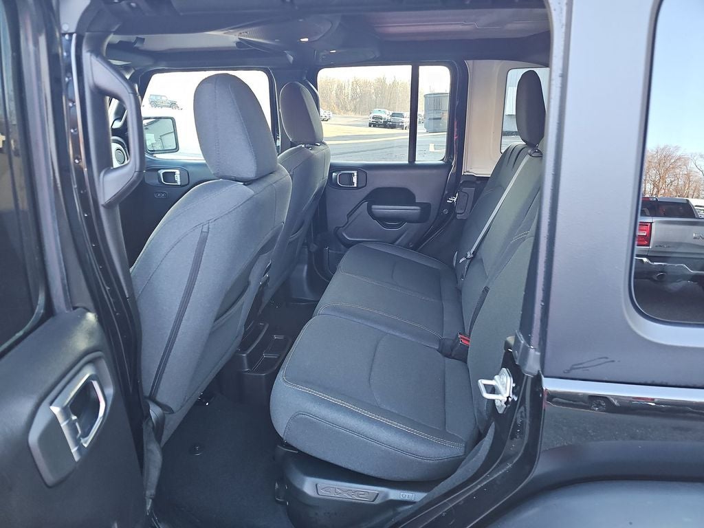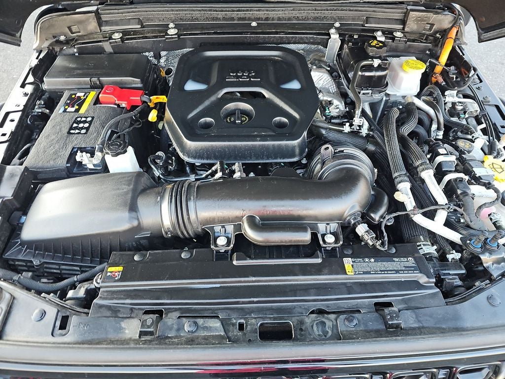 Below is all the standard equipment Convenience Group (2-Door Passive Entry, Front Door Locks, Air Conditioning w/Auto Temperature Control, Air Filtering, Emergency/Assistance Call, Heated Front Seats, Heated Steering Wheel, Remote Start System, and Universal Garage Door Opener), Quick Order Package 29W Willys 4xe (4-Wheel Drive Swing Gate Decal, 4.10 Rear Axle Ratio, 7 & 4 Pin Wiring Harness, 97 MPH Vehicle Max Speed Calibration, Auxiliary Switches, Black Grille, Class II Receiver Hitch, Conventional Differential Front Axle, E-Locker Rear Axle, Front LED Fog Lamps, LED Premium Reflector Headlamps, Molded in Color Rubicon Highline Flare, MOPAR All-Weather Floor Mats, Off-Road Plus Mode, Wheels: 17 x 7.5 Painted Black, Willy's Suspension, and Willys 4xe Hood Decal), 2.0L I4 DOHC, 4-Wheel Disc Brakes, 8 Speakers, ABS brakes, Air Conditioning, Alloy wheels, AM/FM radio: SiriusXM, Apple CarPlay/Android Auto, Black 3-Piece Hard Top, Brake assist, Cloth Low-Back Bucket Seats, Compass, Delay-off headlights, Driver door bin, Driver vanity mirror, Dual front impact airbags, Dual front side impact airbags, Electronic Stability Control, Freedom Panel Storage Bag, Front anti-roll bar, Front Bucket Seats, Front Center Armrest w/Storage, Front fog lights, Front License Plate Bracket (DISC), Front reading lights, Fully automatic headlights, Heated door mirrors, Illuminated entry, Integrated roll-over protection, Low tire pressure warning, Occupant sensing airbag, Outside temperature display, Overhead airbag, Panic alarm, ParkView Rear Back-Up Camera, Passenger door bin, Passenger vanity mirror, Power door mirrors, Power steering, Power windows, Radio data system, Radio: Uconnect 5 w/12.3 Display, Rear anti-roll bar, Rear reading lights, Rear Window Defroster, Rear Window Wiper/Washer, Remote keyless entry, Security system, Speed control, Split folding rear seat, Sport Suspension, Steering wheel mounted audio controls, Tachometer, Telescoping steering wheel, Tilt steering wheel, Traction control, Trip computer, Variably intermittent wipers, Voltmeter, and Wheels: 20 x 8 Machined/Painted Gray.