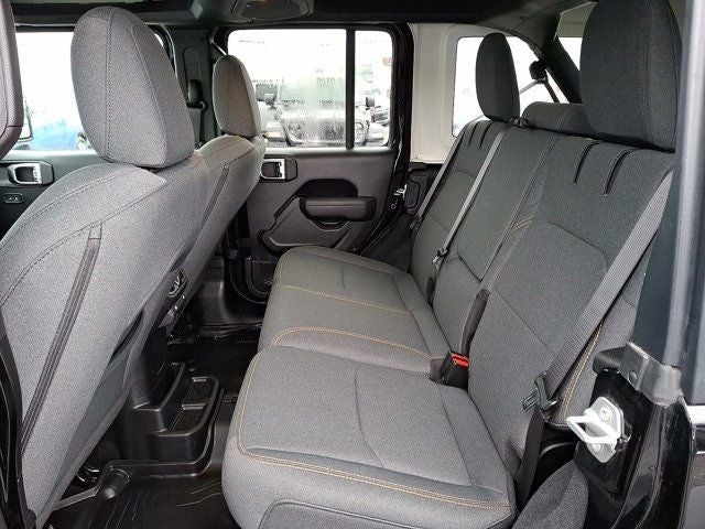 Below is all the standard equipment Convenience Group (2-Door Passive Entry, Front Door Locks, Air Conditioning w/Auto Temperature Control, Air Filtering, Emergency/Assistance Call, Heated Front Seats, Heated Steering Wheel, Remote Start System, and Universal Garage Door Opener), Quick Order Package 29W Willys 4xe (4-Wheel Drive Swing Gate Decal, 4.10 Rear Axle Ratio, 7 & 4 Pin Wiring Harness, 97 MPH Vehicle Max Speed Calibration, Auxiliary Switches, Black Grille, Class II Receiver Hitch, Conventional Differential Front Axle, E-Locker Rear Axle, Front LED Fog Lamps, LED Premium Reflector Headlamps, Molded in Color Rubicon Highline Flare, MOPAR All-Weather Floor Mats, Off-Road Plus Mode, Wheels: 17 x 7.5 Painted Black, Willy's Suspension, and Willys 4xe Hood Decal), FCA US LLC Certified Pre-Owned Certified, 2.0L I4 DOHC, Black 3-Piece Hard Top, Freedom Panel Storage Bag, Rear Window Defroster, Rear Window Wiper/Washer, 4-Wheel Disc Brakes, 8 Speakers, ABS brakes, Air Conditioning, Alloy wheels, AM/FM radio: SiriusXM, Apple CarPlay/Android Auto, Brake assist, Cloth Low-Back Bucket Seats, Compass, Delay-off headlights, Driver door bin, Driver vanity mirror, Dual front impact airbags, Dual front side impact airbags, Electronic Stability Control, Front anti-roll bar, Front Bucket Seats, Front Center Armrest w/Storage, Front fog lights, Front License Plate Bracket (DISC), Front reading lights, Fully automatic headlights, Heated door mirrors, Illuminated entry, Integrated roll-over protection, Low tire pressure warning, Occupant sensing airbag, Outside temperature display, Overhead airbag, Panic alarm, ParkView Rear Back-Up Camera, Passenger door bin, Passenger vanity mirror, Power door mirrors, Power steering, Power windows, Radio data system, Radio: Uconnect 5 w/12.3 Display, Rear anti-roll bar, Rear reading lights, Remote keyless entry, Security system, Speed control, Split folding rear seat, Sport Suspension, Steering wheel mounted audio controls, Tachometer, Telescoping steering wheel, Tilt steering wheel, Traction control, Trip computer, Variably intermittent wipers, Voltmeter, and Wheels: 20 x 8 Machined/Painted Gray.